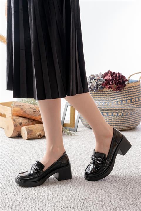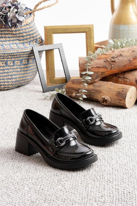Kadın Tilda Siyah Cilt İnce Toka Detaylı 6 cm Topuklu Lofer Ayakkabı