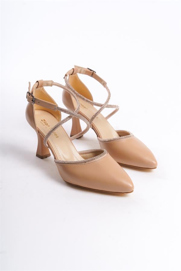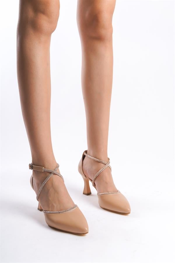 Kadın Alana Krem Cilt oka Detaylı 6 cm Topuklu Lofer Ayakkabı