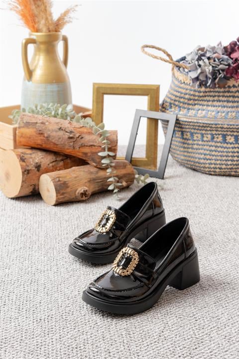 Kadın Tilda Siyah Cilt İnce Toka Detaylı 6 cm Topuklu Lofer Ayakkabı