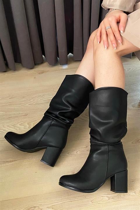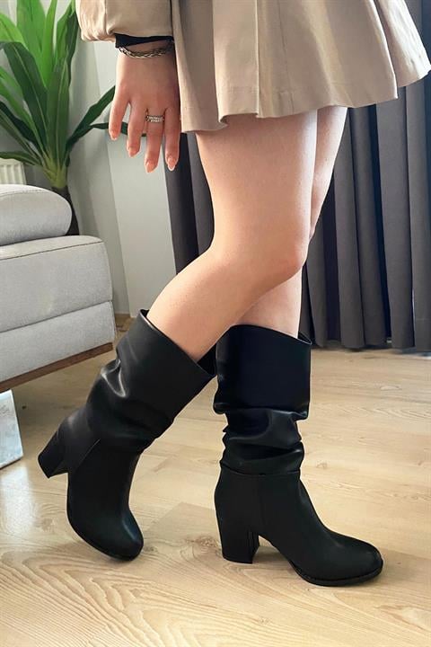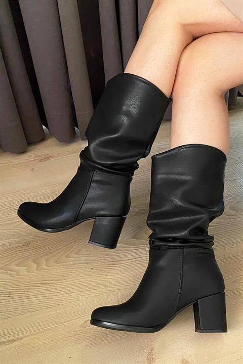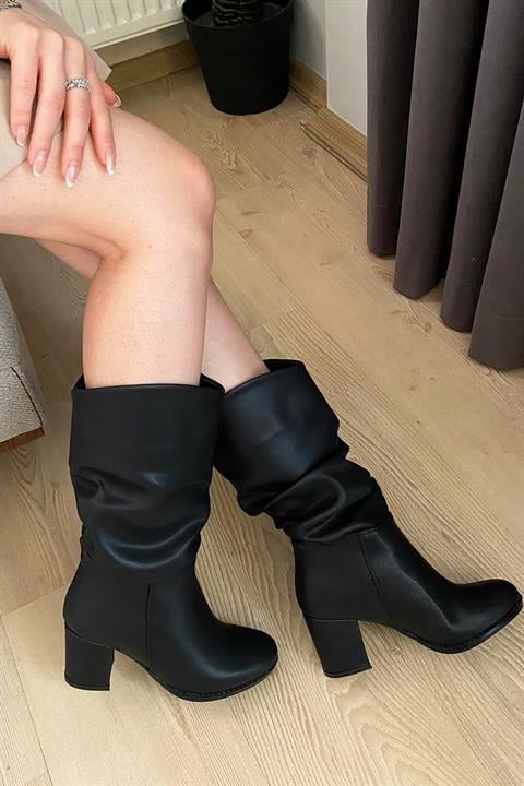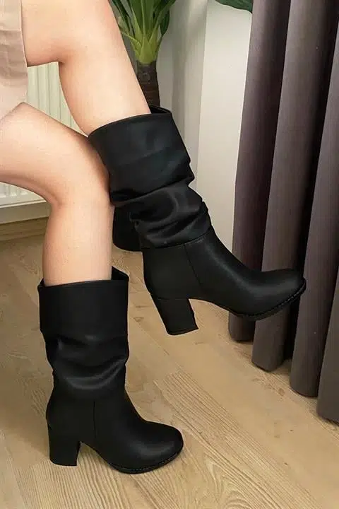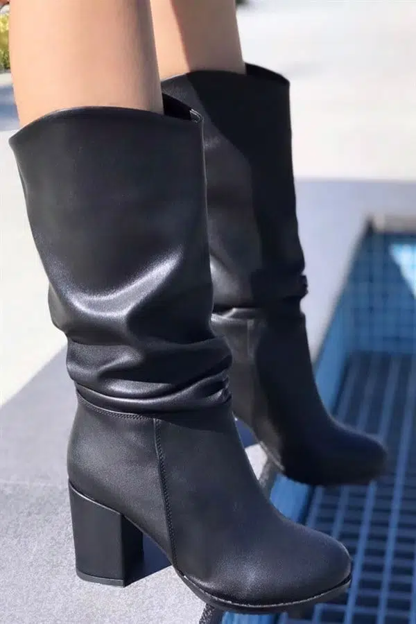 Kadın Azra Siyah Cilt Körüklü Çizme