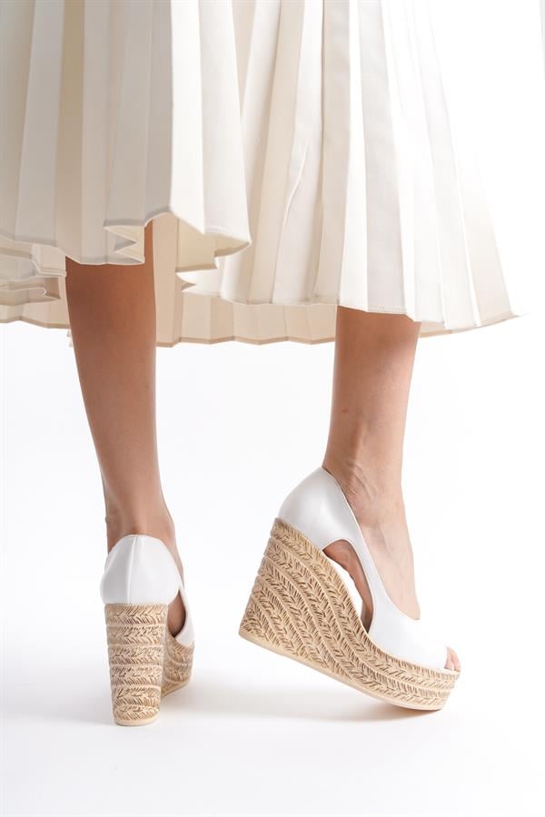 Kadın Marci Krem Cilt Geniş Bantlı (12 cm ) Platform Topuklu Terlik