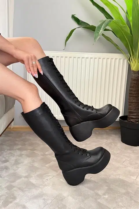 • Ürün Özellikleri: Bağcık Detaylı Ortabetik Petli Kalın Taban Platfomlu Çizme