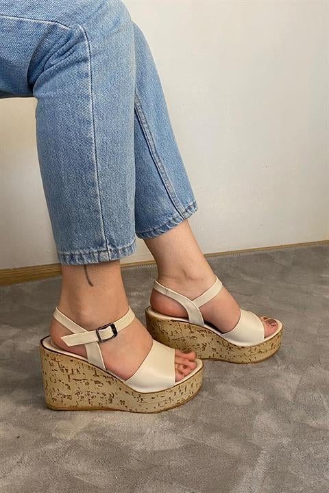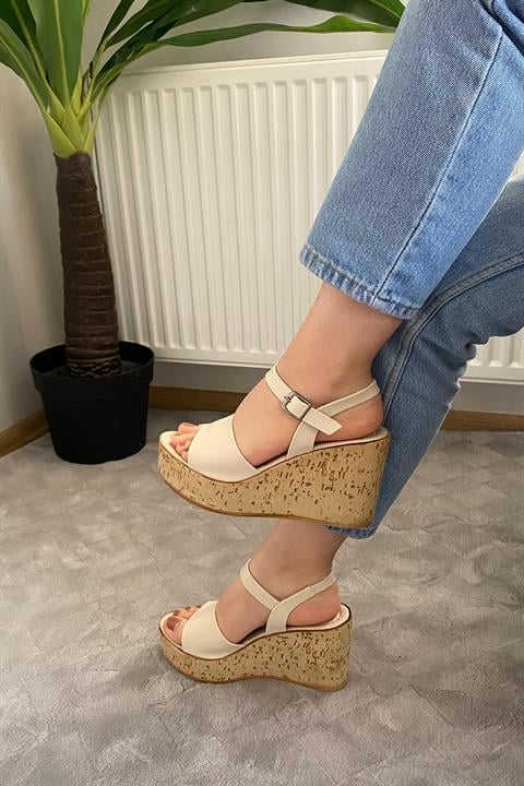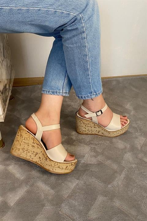 Kadın Bery Krem Cilt Tek Bant Yüksek Dolgu Mantar Taban Ayakkabı & Sandalet K-910