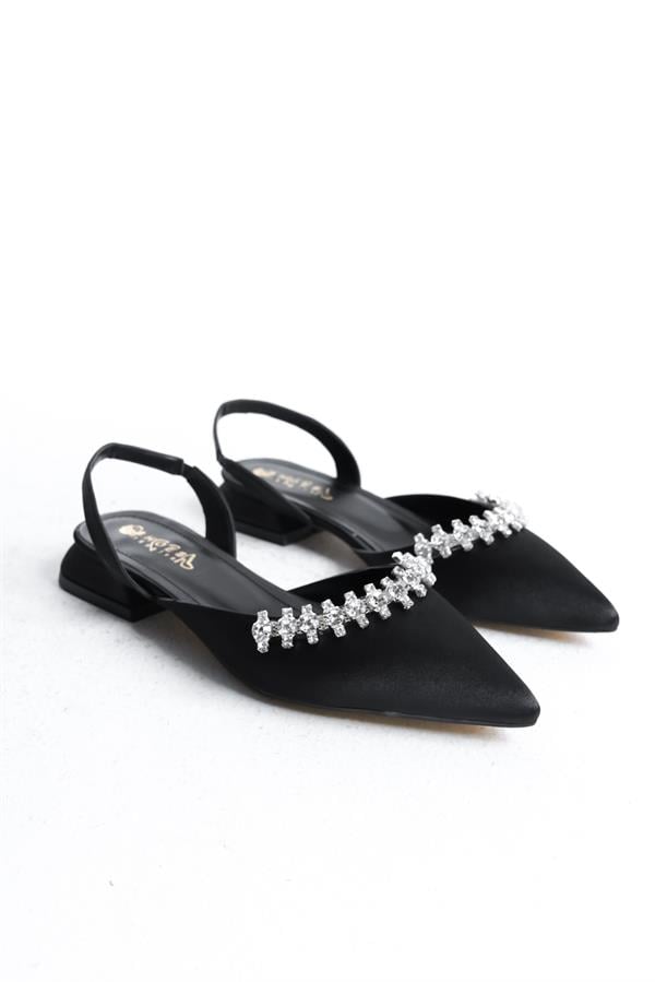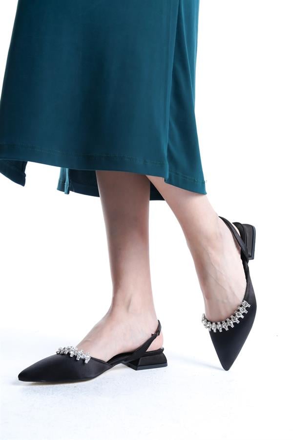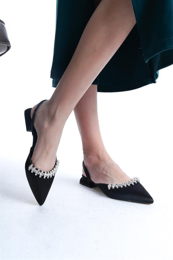 Kadın Fenny Bej Saten Kristal Taşlı 9 Cm Teş Detaylı İnce Topuklu Sivri Burunlu Arkası Acık Stiletto