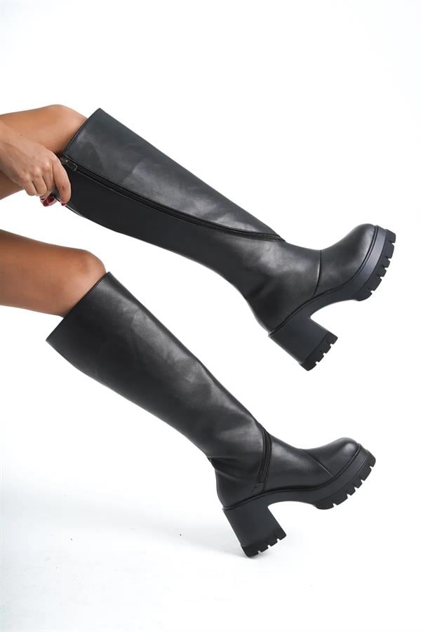 Kadın Oslo Krem Cilt 8 cm Topuklu Yandan Fermuarlı Çizme