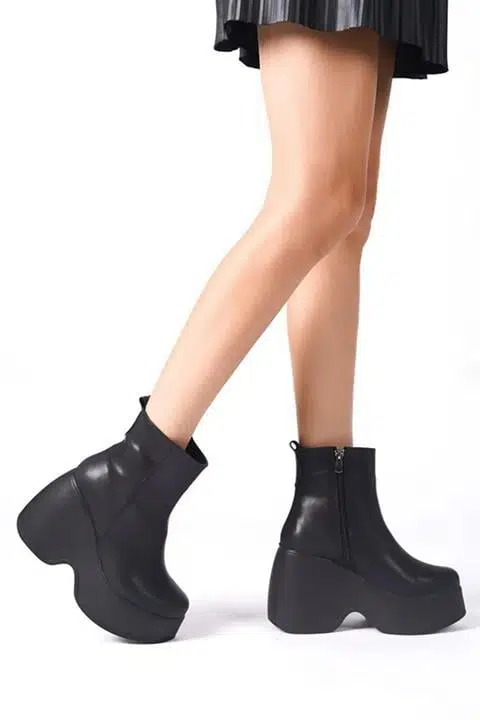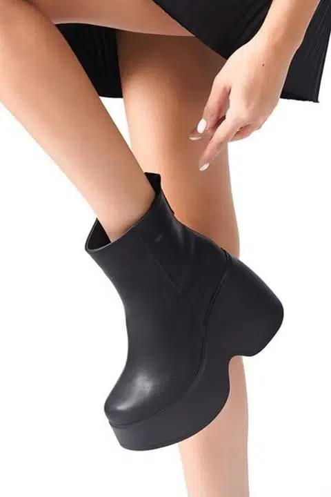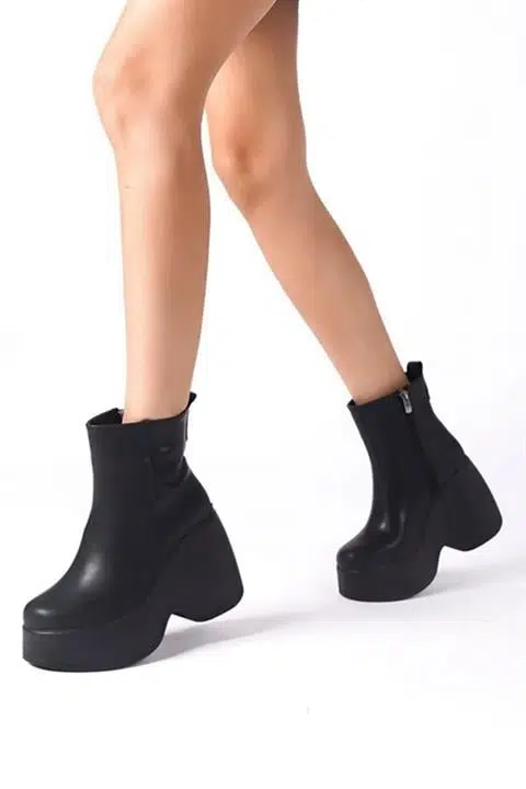 • Ürün Detayı: Yeni Sezon Yandan Fermuarlı 9 cm Yüksek Dolgu Topuklu Mevsimlik Kadın Kısa Bot Booti
