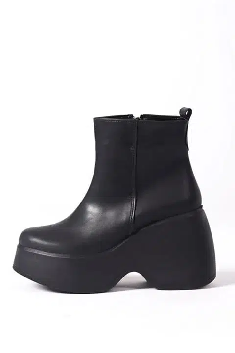 Kadın Celsi Siyah Yandan Fermuarlı 9 cm Yüksek Dolgu Topuklu Mevsimlik Kadın Kısa Bot Bootie
