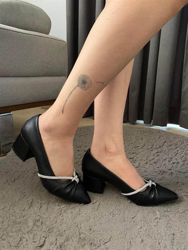 Kadın Trend Arkadan Taşlı ( 6 cm ) Topuklu Oval Burun Bot