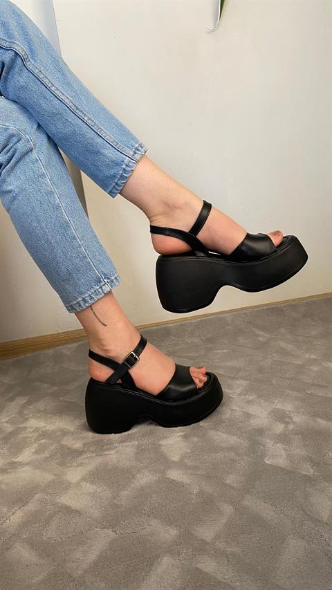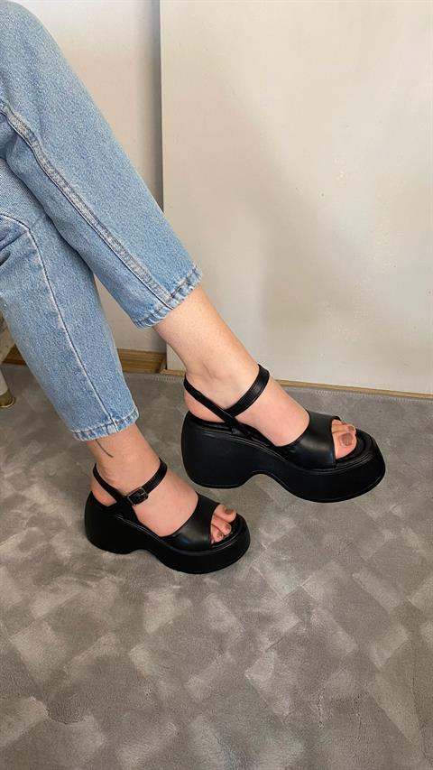 • Ürün Özellikleri: Tek Bantlı Bilekten Bağlamalı Ortabetik Petli Yüksek Taban Sandalet