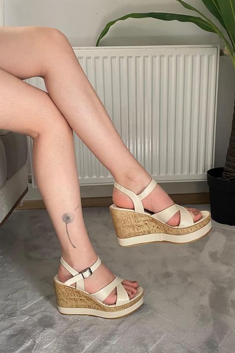 • Ürün Özellikleri:   Dolgu Topuklu Mantar taban Şerit Sargılı Santalet ,Çapraz Bantlı Sargı Tetaylı Platfomlu Ayakkabı