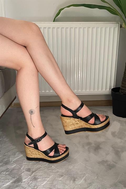 Kadın Bery Beyaz Cilt Çapraz Bant Yüksek Dolgu Mantar Taban Ayakkabı & Sandalet K-900