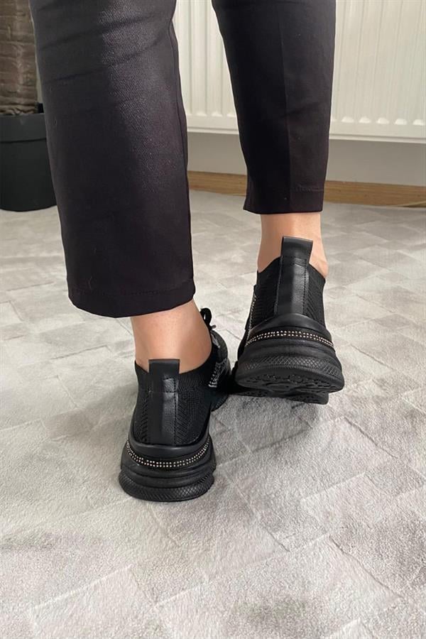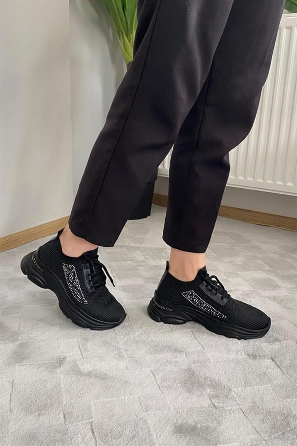 Kadın Fabri Siyah Triko Taşlı Spor Ayakkabı & Sneaker