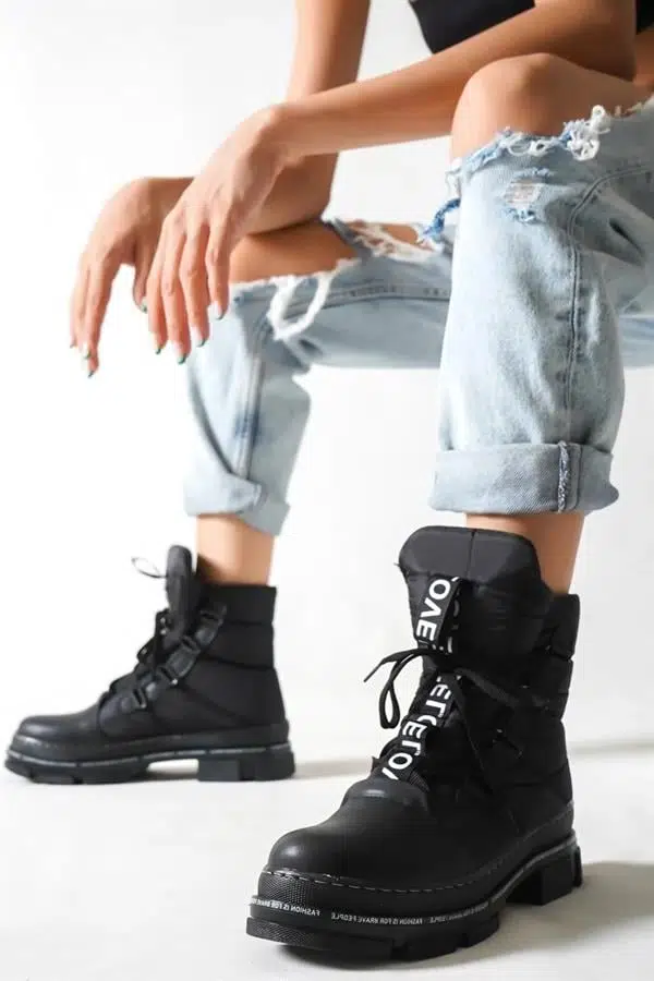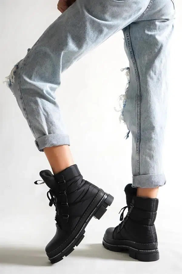 Kadın Fasion Siyah Paraşüt Kumaş Kar Botu