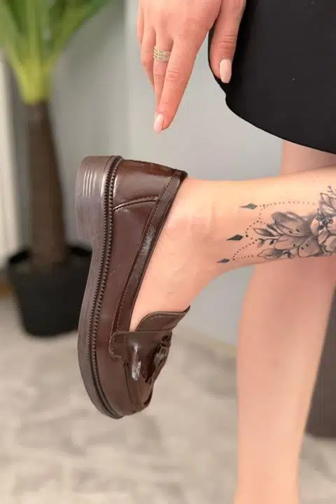 Kadın Flex Kahve Rugan Loafer Günlük Ayakkabı
