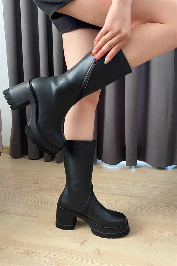 Kadın Sabina Siyah Tokalı Topuklu Dalgıç Çizme