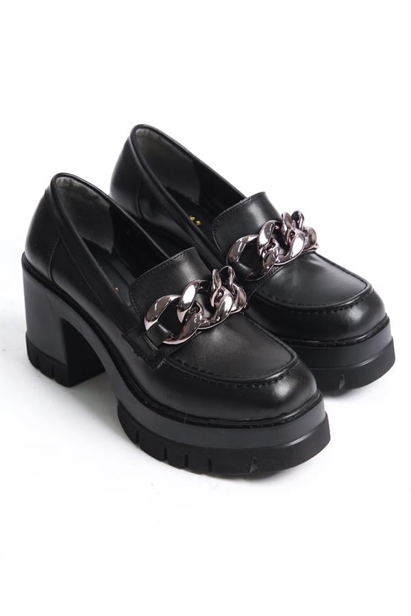 Kadın Guzi Siyah Cilt Tokalı 8 cm Topuklu Platformlu Ayakkabı