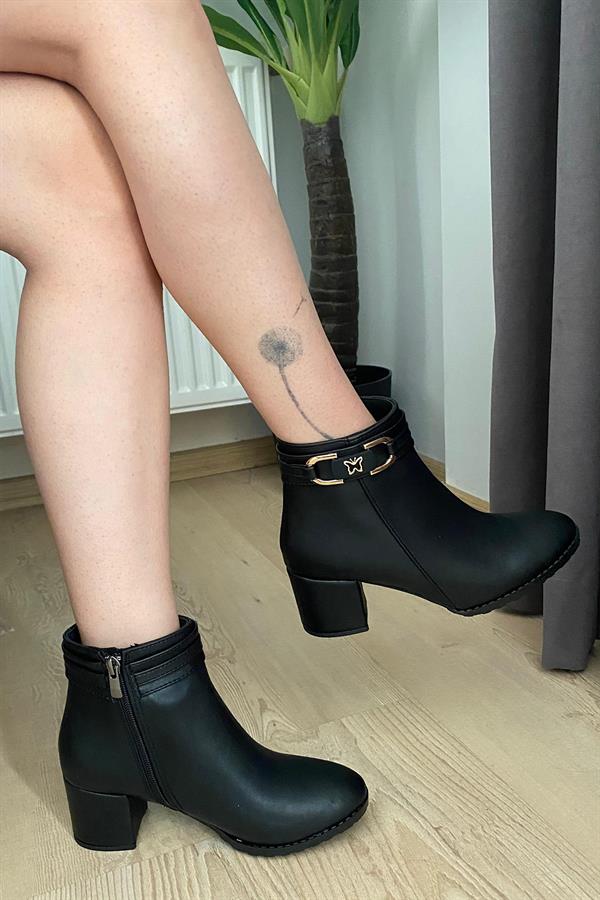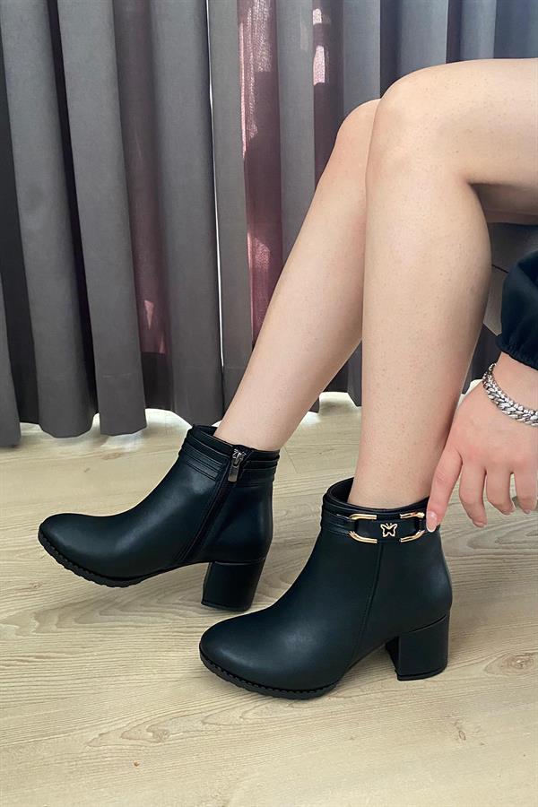 • Ürün Detayı: Yeni Sezon 6 cm Kalın Topuklu Kelebek Toka Detaylı Bilek Üzeri Bot