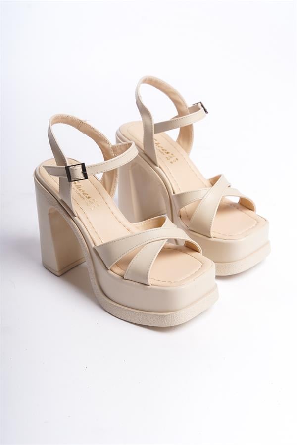 Kadın Femi Krem Cilt 8 cm Topuklu Platformlu Ayakkabı