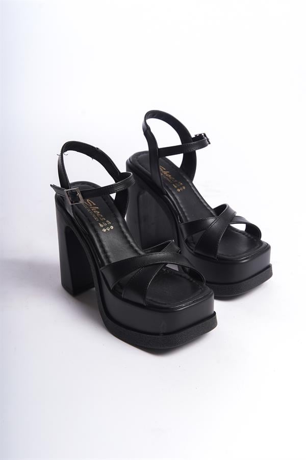 Kadın Femi Siyah Cilt 8 cm Topuklu Platformlu Ayakkabı