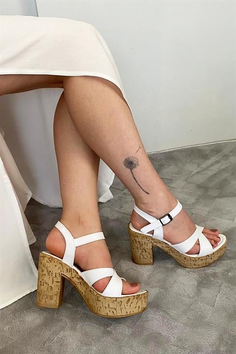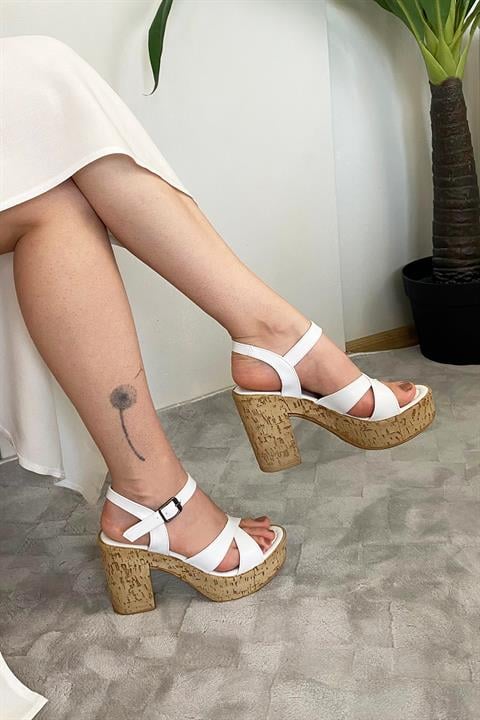 Kadın Anita Beyaz Biyeli Kalın Taban Ortopedik Sandalet K-3020