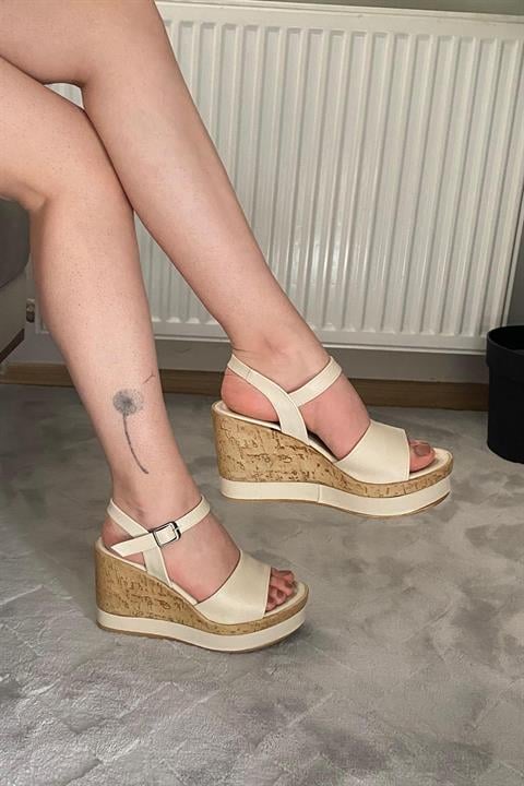 • Ürün Özellikleri:   Dolgu Topuklu Mantar taban Şerit Sargılı Santalet, Tek  Bantlı Sargı Tetaylı Platfomlu Ayakkabı