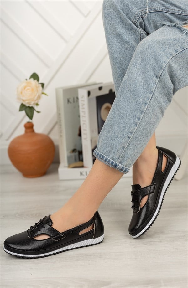 Kadın Guzi Siyah Cilt Tokalı 8 cm Topuklu Platformlu Ayakkabı