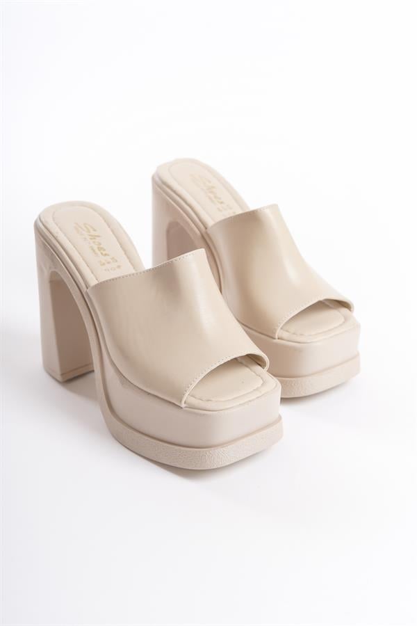 Kadın Alana Krem Cilt oka Detaylı 6 cm Topuklu Lofer Ayakkabı