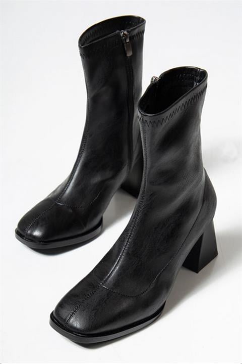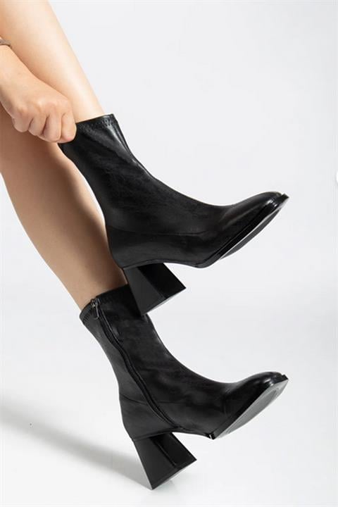 Kadın Marina Siyah Bot 7 cm Kalın Topuklu Streç Boots