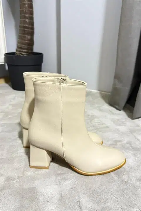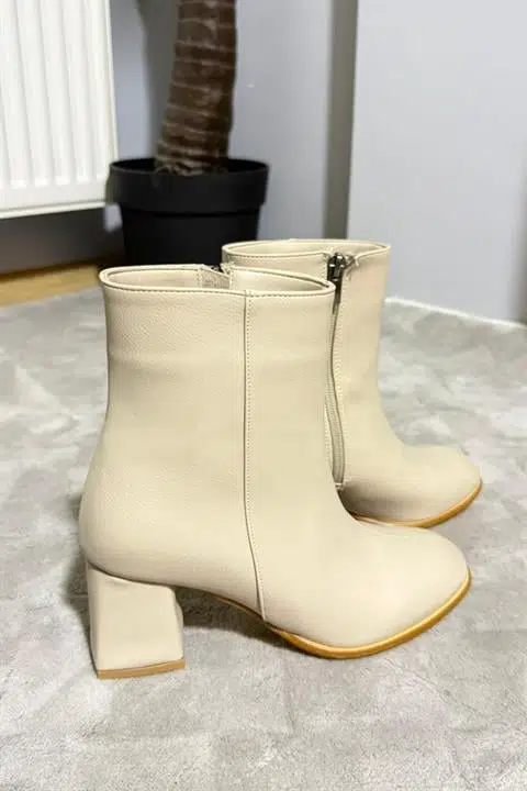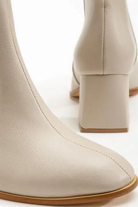Kadın Marta Bej Cilt Kalın Topuklu Yumurta Burun Fermuarlı Bot
