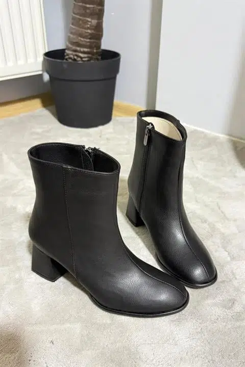 • Kadın Marta 6 cm Kalın Topuklu Yumurta Burun Fermuarlı Bot