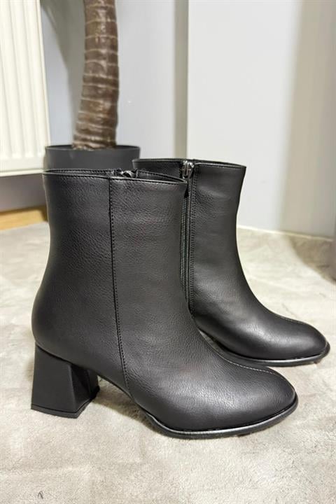 • Kadın Marta 6 cm Kalın Topuklu Yumurta  Burun Fermuarlı Bot