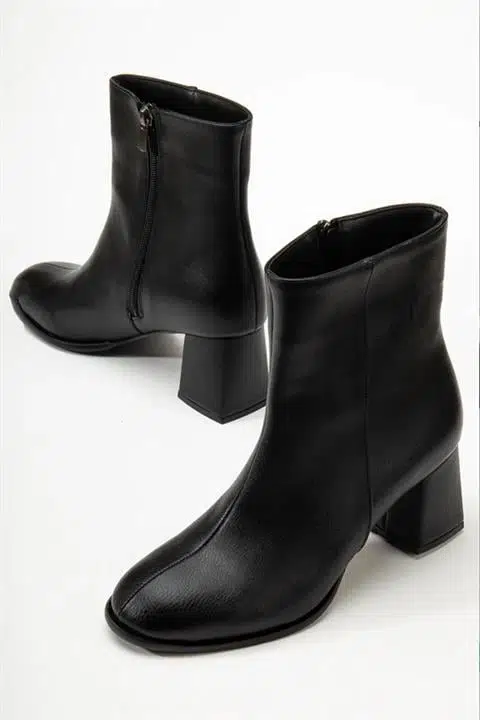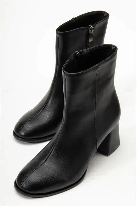 Kadın Marta Siyah Kalın Topuklu Yumurta Burun Fermuarlı Bot