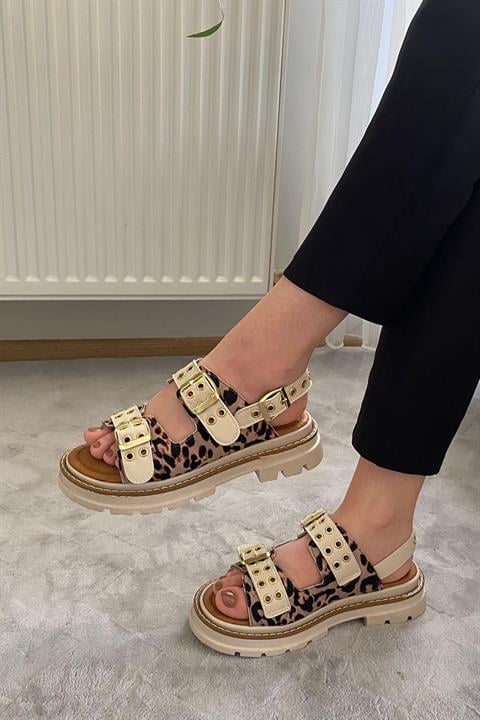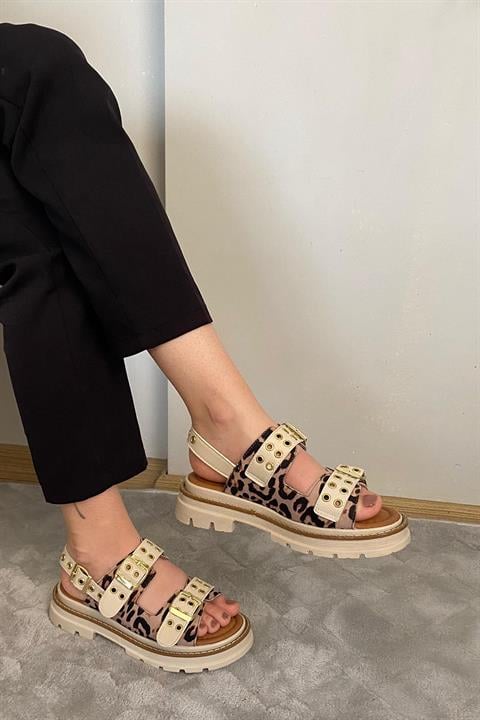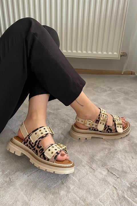 Kadın Oliver Bej İki Tokalı Kalın Taban Ortopedik Sandalet K-3040