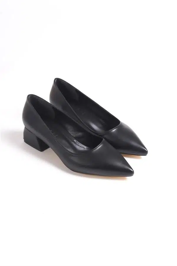 Kadın Mora Siyah Deri 3,5 cm Kalın Topuklu Ayakkabı