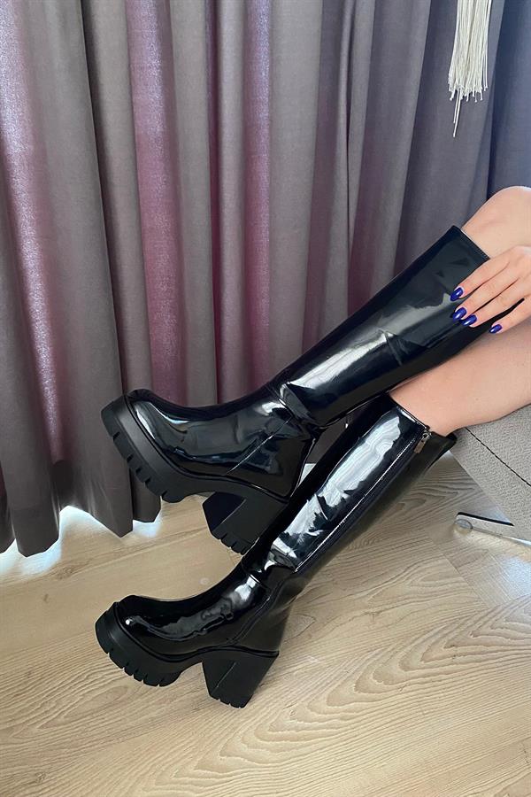 Kadın Eliza Gümüş Simli 9 cm Kalın Topuklu Taş Detaylı Aykkabı