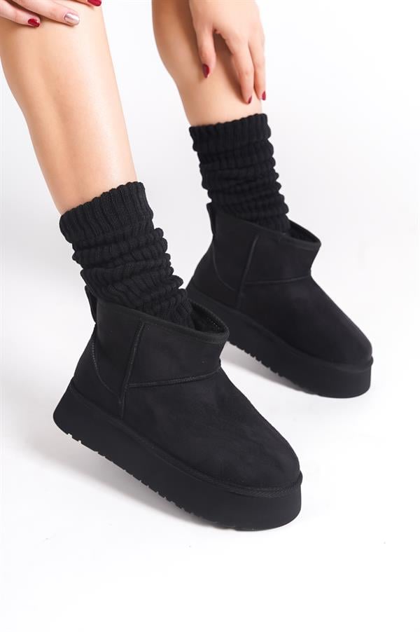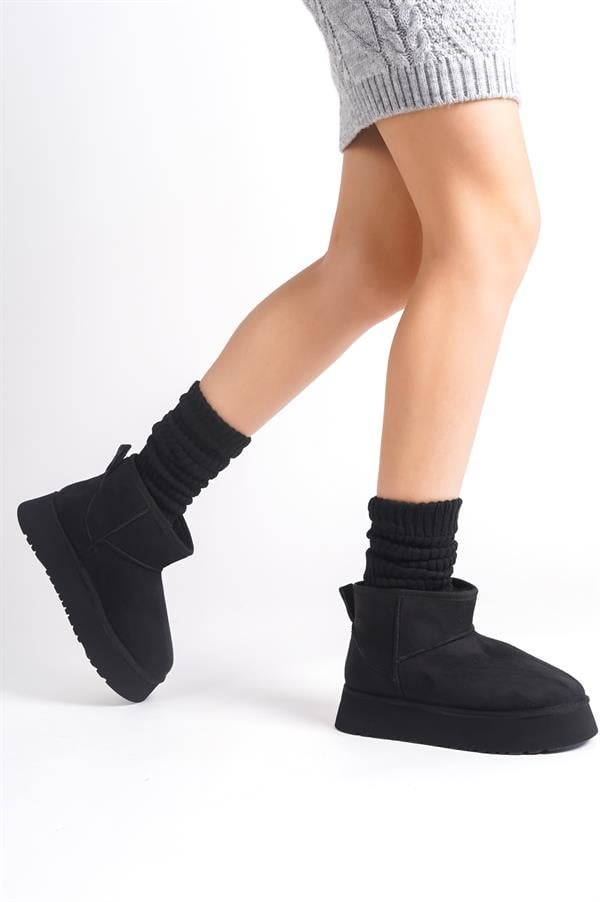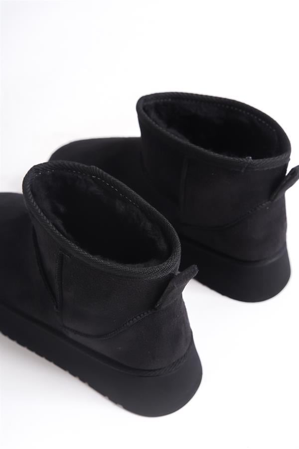 Kadın Palermo Siyah Süet İçi Kürklü Kalın Tabanli (4,5 cm ) Mini Kısa Bot