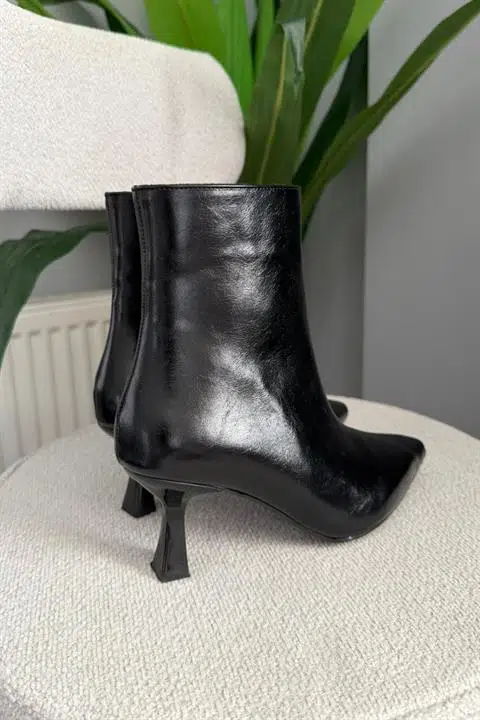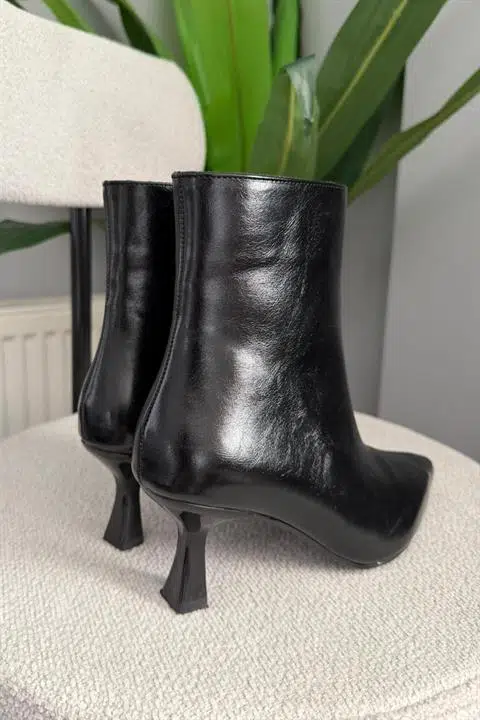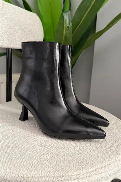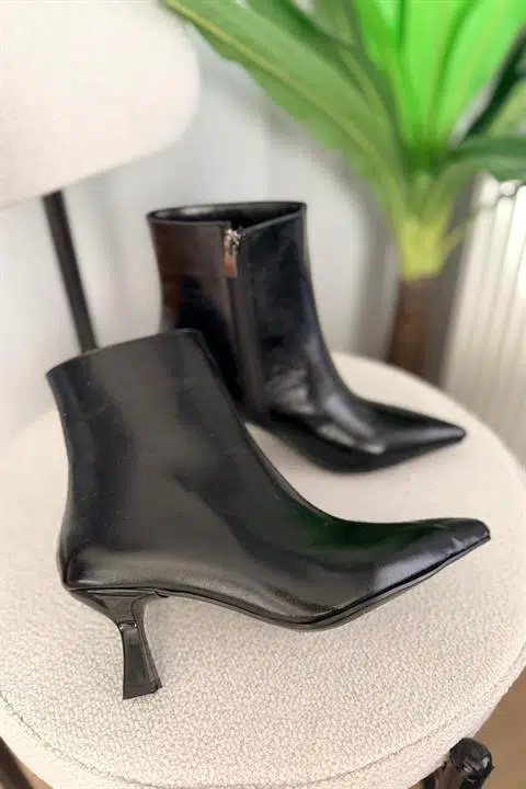 Kadın Peri Siyah 7cm Topuklu Sivri Burun Fermuarlı Bot