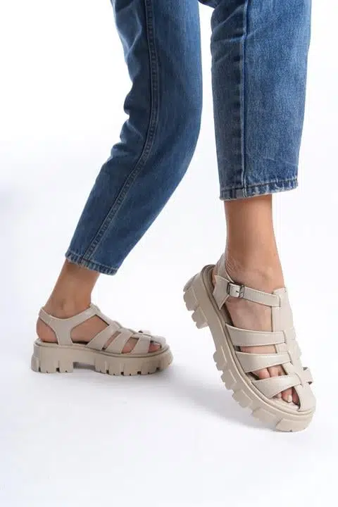 Kadın Petra Bej Yüksek Taban Kafes Model Sandalet 950