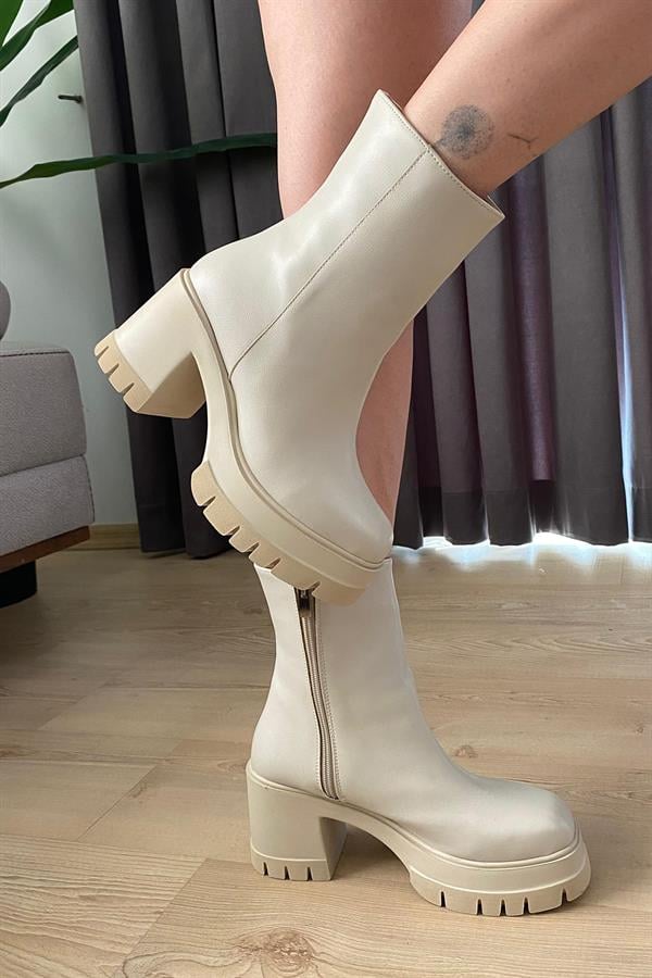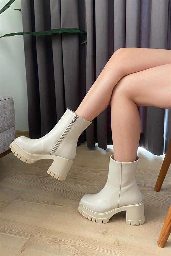 Kadın Clara Krem Cilt İnce Tokalı Lofer Model 12 cm Platform Topuklu Ayakkabı