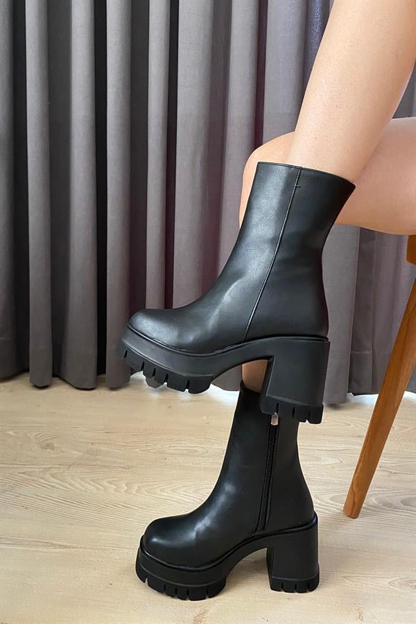 Kadın Alara Krem Süet Fermuarlı 8 cm Platfom Topuklu Bot