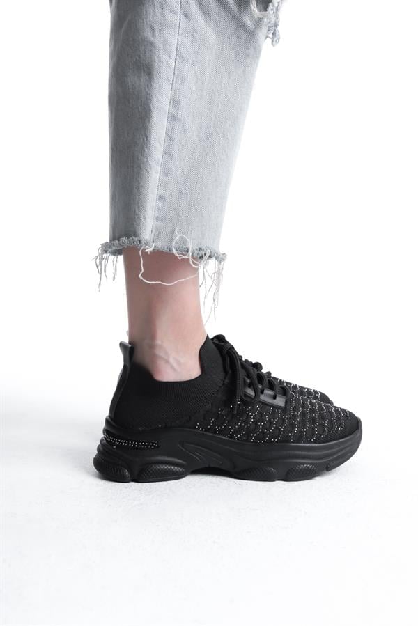 Kadın Rocco Siyah Triko Taşlı Spor Ayakkabı & Sneaker