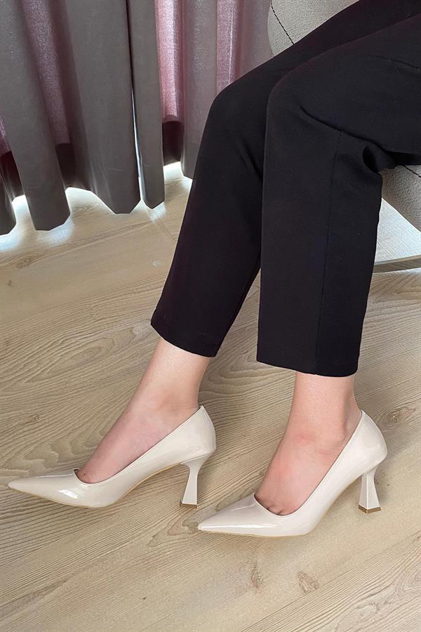 Kadın Femi Krem Cilt 8 cm Topuklu Platformlu Ayakkabı