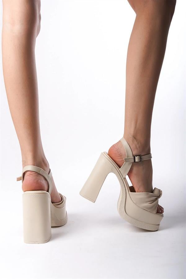Kadın Vendy Krem Cilt Kısa Topuklu Kovboy Bot