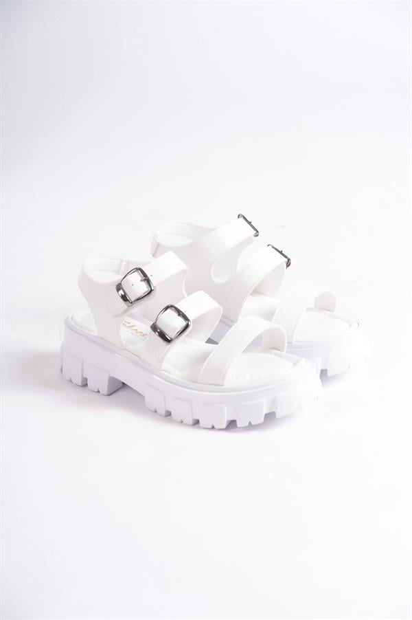 Kadın Seso Beyaz Yüksek Üç Bant Bilekten Bağlamalı Sandalet 970