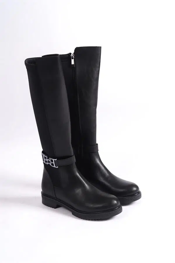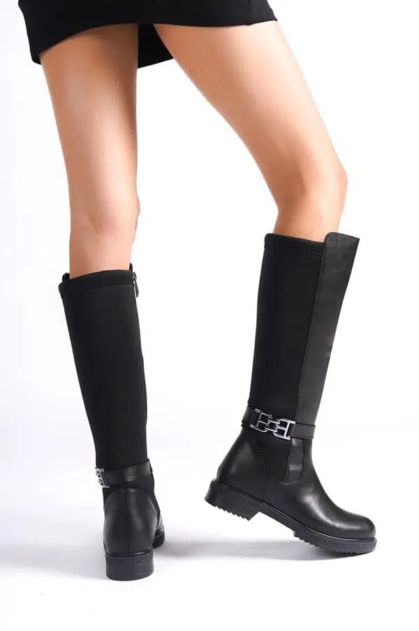 Kadın Siyah Tokalı Dalgıç Kumaş Dizaltı Çizme