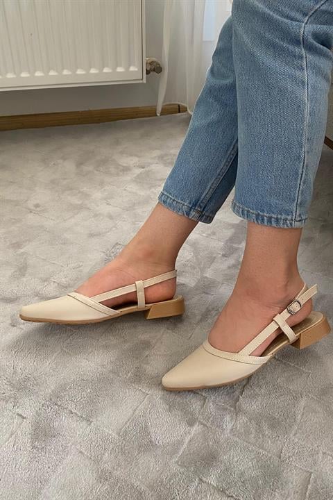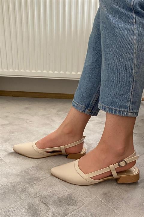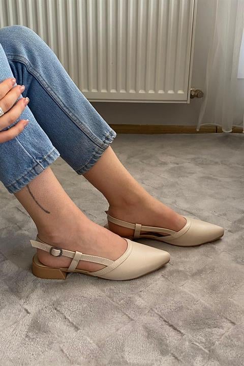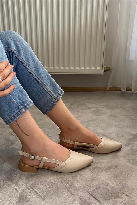 Kadın Tena Bej Cilt Arkası Acık Sivri Burun Günlük Babet