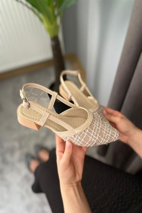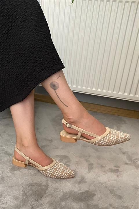 Kadın Tena Bej Keten Arkası Acık Sivri Burun Günlük Babet