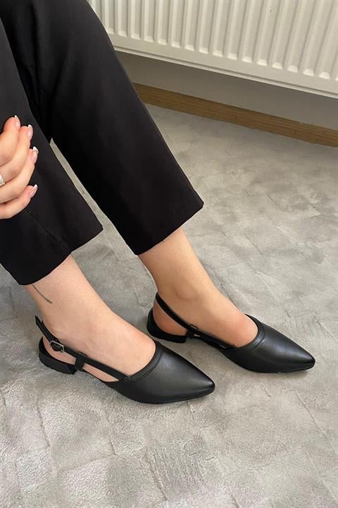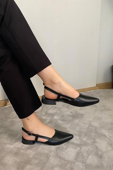 Kadın Tena Siyah Cilt Arkası Acık Sivri Burun Günlük Babet