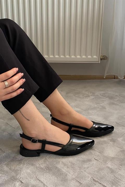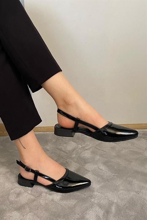 Kadın Tena Siyah Rugan Arkası Acık Sivri Burun Günlük Babet