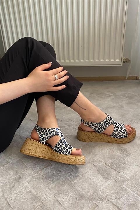 Kadın Bonti Siyah Üç Biyeli Toka Detaylı Kalın Taban Ortopedik Sandalet K-3030